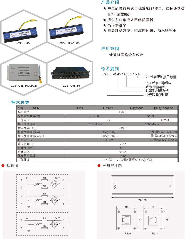 計(jì)算機(jī)網(wǎng)絡(luò)浪涌保護(hù)器 ZGS-RJ45/RJ11